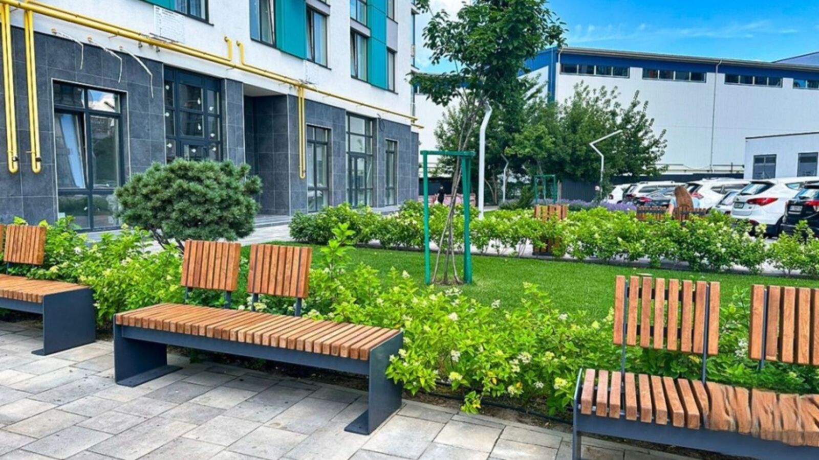закрита територія, що знаходиться під цілодобовою охороною, з алеями для прогулянок і фонтанами.